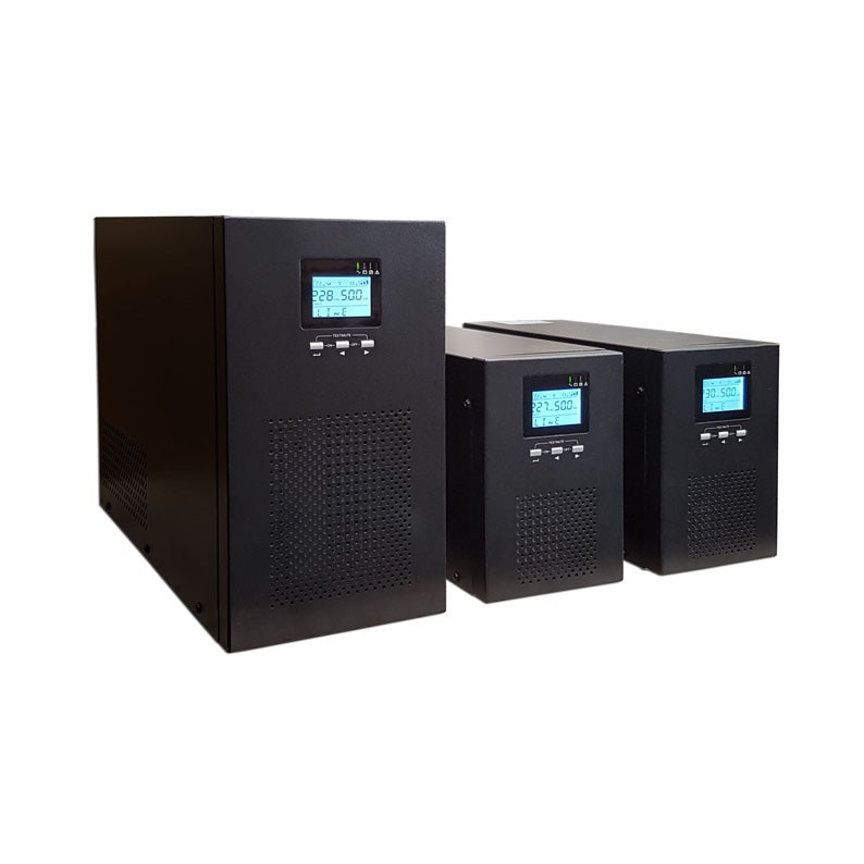 POTENZA NOMINALE 2000 VA 1600 W FORMA DONDA USCITA 100% SINUSOIDALE CONTROLLO DIGITALE DSP STABILIZZATORE DI TENSIONE AVR FUNZIONE WIDE RANGE INPUT AMPIA TOLLERANZA SULLA TENSIONE DI INGRESSO SENZA INTERVENTO DA BATTERIA RICONOSCIMENTO AUTOMATICO FREQUENZA INGRESSO E SELEZIONE FREQUENZA USCITA CONSEGUENTE (50-60 HZ) POSSIBILITÀ DI FUNZIONAMENTO CON ALIMENTAZIONE DA GENERATORE FUNZIONE AUTO SWITCHING ACCENSIONE AUTOMATICA IN PRESENZA DI CORRENTE ELETTRICA (SETTABILE) FUNZIONE AUTO RESTART RIPRISTINO AUTOMATICO A RITORNO DI RETE (SETTABILE) FUNZIONE COLD START POSSIBILITÀ DI ACCENSIONE DA BATTERIA POSSIBILITÀ DI SETTAGGIO CORRENTE DI RICARICA BATTERIA E TENSIONE FINE SCARICA SETTAGGIO TENSIONE FINE SCARICA BATTERIE (RISERVA DI CARICA) RICARICA DELLE BATTERIE ANCHE DA UPS SPENTO FUNZIONE RISPARMIO ENERGETICO POSSIBILITÀ DI SETTAGGIO IN MODALITÀ BATTERIA CON CARICO <3% (SETTABILE) FUNZIONE SPEGNIMENTO DEL CARICO, POSSIBILITÀ DI SETTAGGIO IN MODALITÀ BATTERIA CON CARICO <3% (SETTABILE) TACITAZIONE AUTOMATICA E MANUALE ALLARME ACUSTICO PROTEZIONI: CORTO CIRCUITO, SOVRACCARICO, SOTTO TENSIONE, SOVRACCARICO BATTERIE PANNELLO FRONTALE A LED E LCD (TENSIONE/FREQUENZA INGRESSO, TENSIONE/PERCENTUALE LIVELLO BATTERIA, TENSIONE/FREQUENZA USCITA, MISURE W/VA CARICO, TEMPERATURA) PROTEZIONE RETE TELEFONICA TRAMITE CONNETTORE RJ45 PORTA USB E SLOT PER SCHEDE SNMP O AS400 (OPTIONAL) PESO E DIMENSIONI RIDOTTE MANTELLO IN METALLOGRUPPO DI CONTINUITÀ 2000 VA LINE INTERACTIVE
