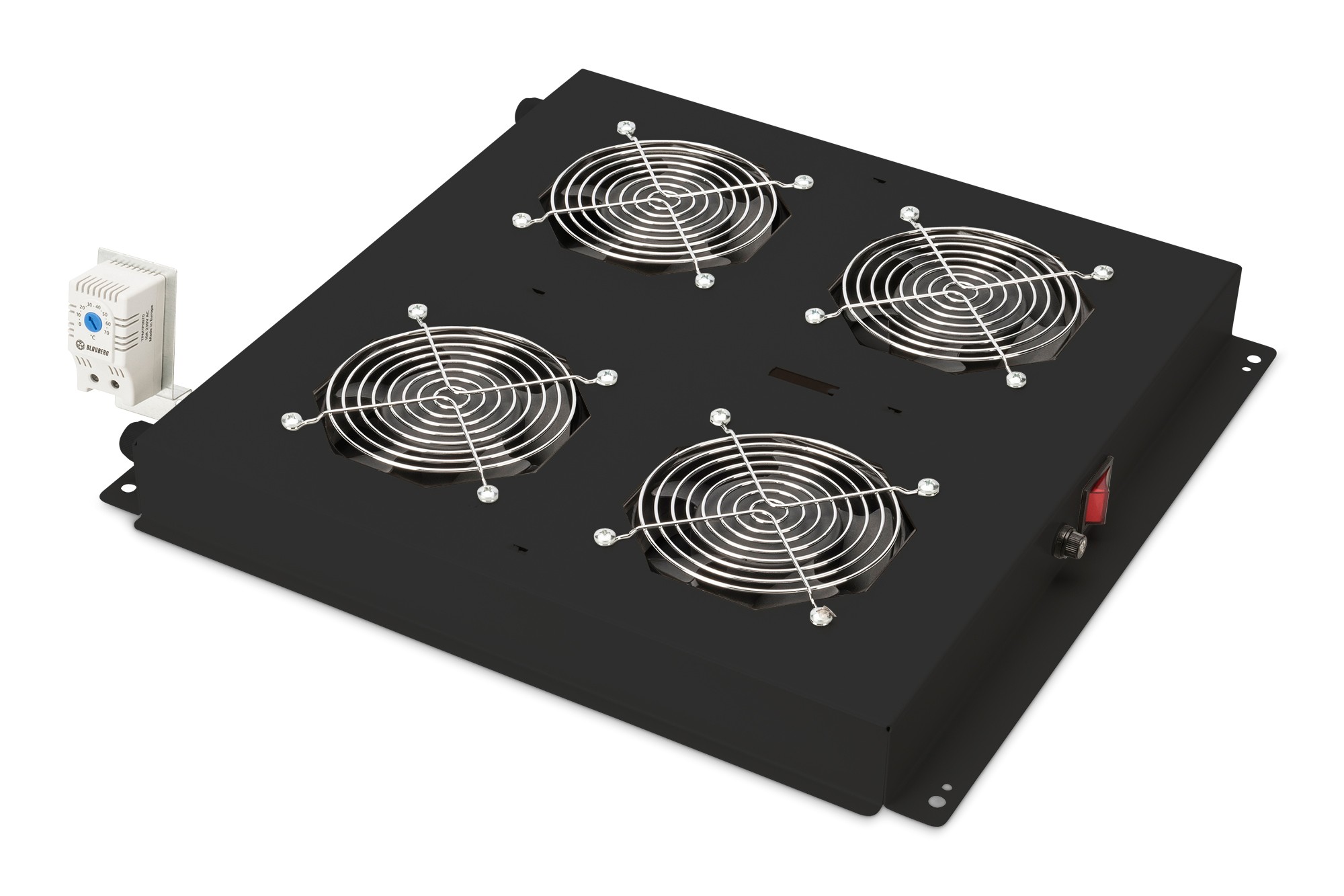 RIPIANO PER ARMADI RACK 19" CON 4 VENTOLE NERO 4 AGGANCI 483X330X44MM CON TERMOSTATO